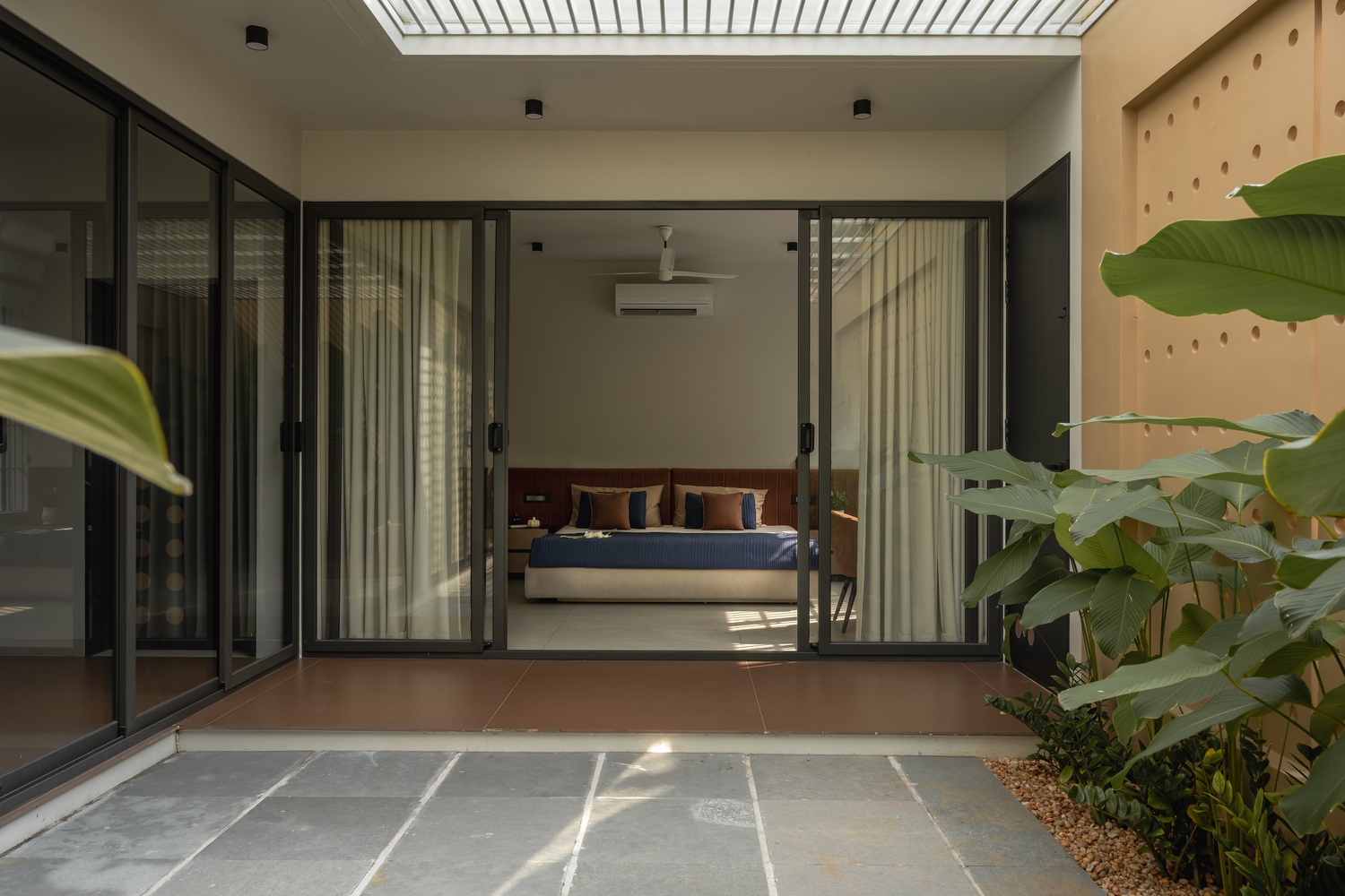 Rooms face inward toward courtyards, maintaining a continuous dialogue between interior and exterior spaces. The open planning ensures that air and light flow naturally, creating an organic rhythm that defines the spatial experience.