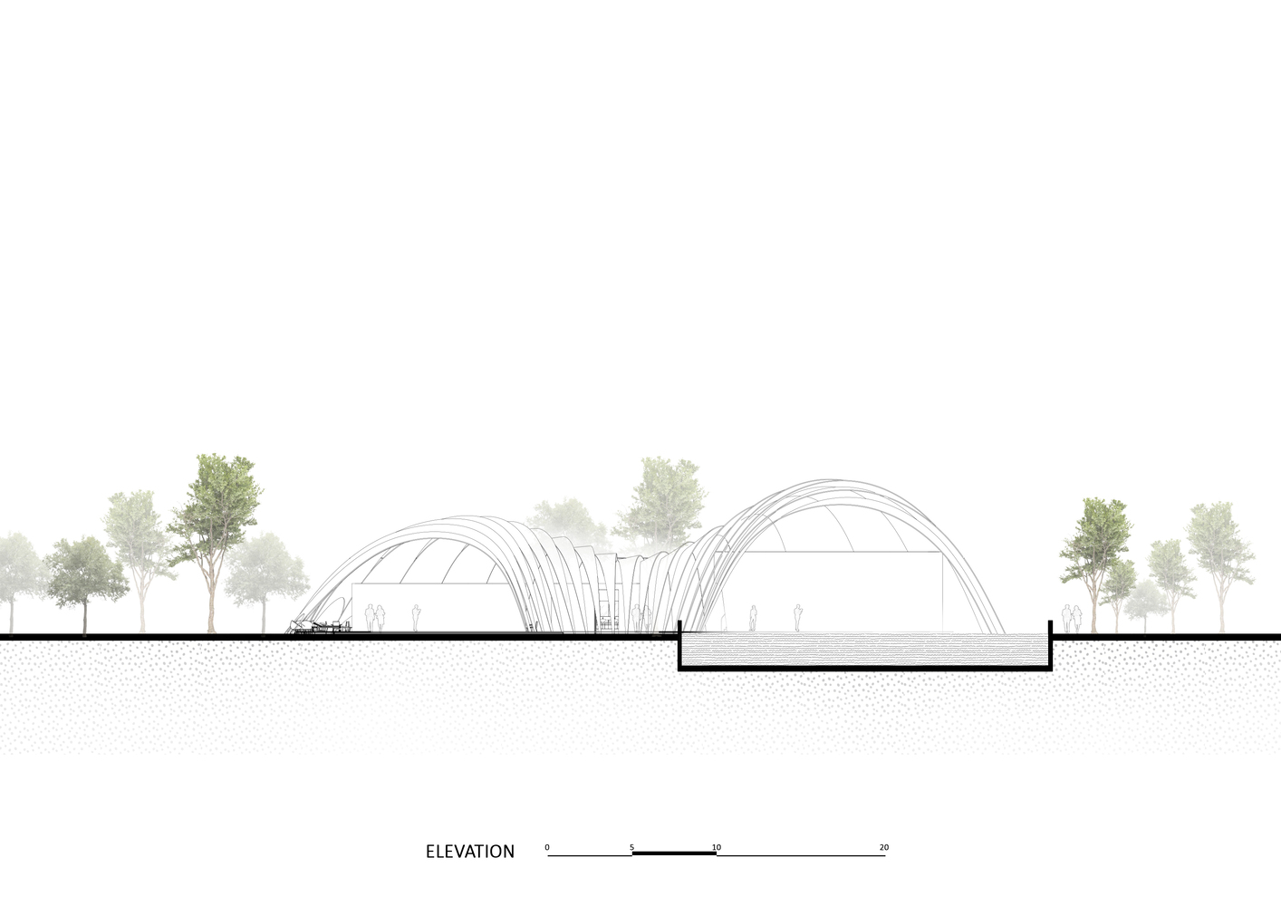 Inspired by the majestic contours of nature and the regional culture of Lam River, the architects created a non-linear architectural mass, challenging the angularity of the urban environment.