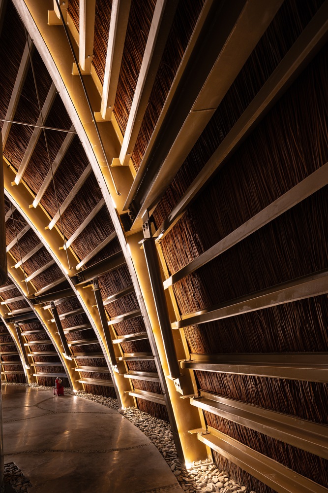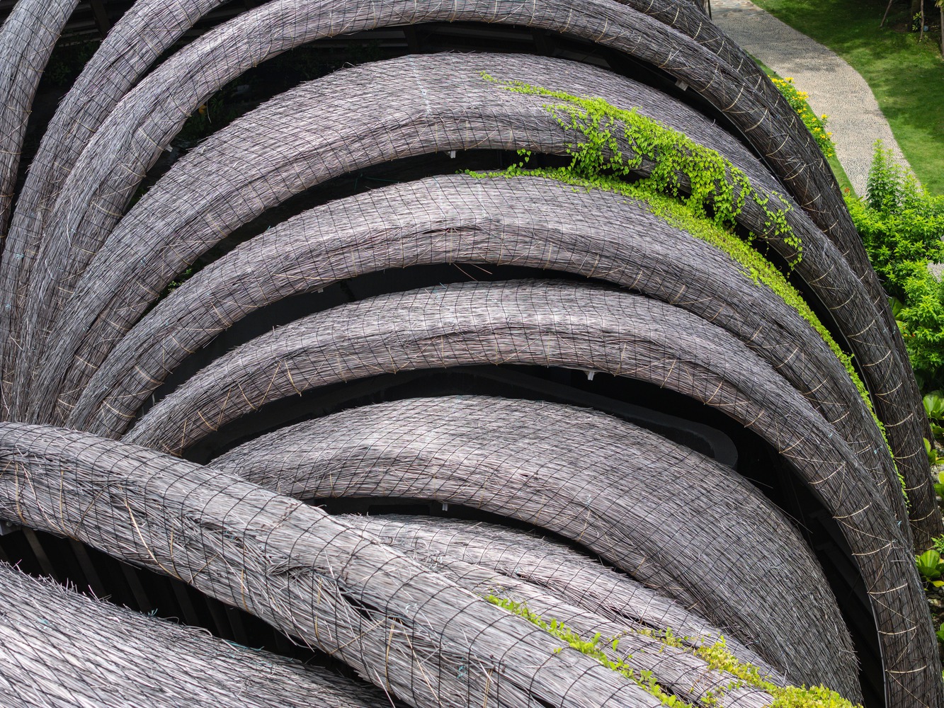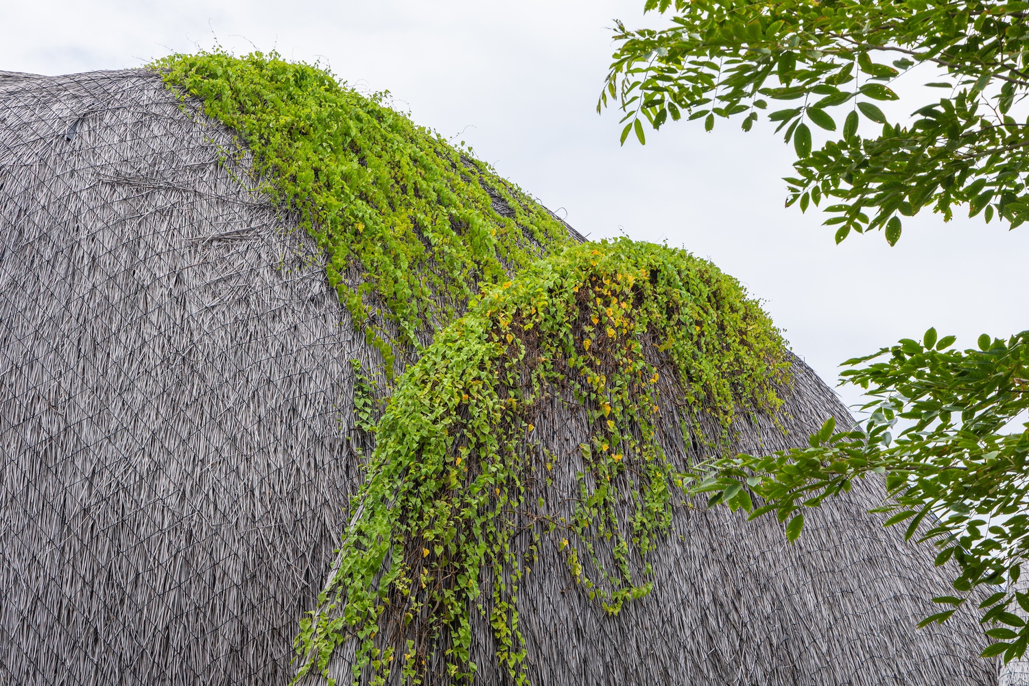 This Natural Skin Not Only Provides Covering But Also Acts As A Microclimate Filter, Keeping The Space Below Cool And Offering A Unique Tactile Quality. Over Time, The Guột Roof Will Change Its Hue, Further Blending Into The Layer Of Lush Green Vegetation Clinging To It.