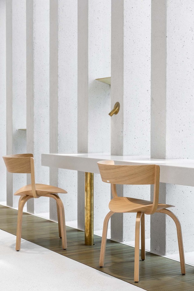 Today brass is, of course, all the more appreciated as a material for its inherently anti-bacterial properties but when designing the building JKMM wanted a finish that would contrast with the concrete surfaces that dominate the architecture.