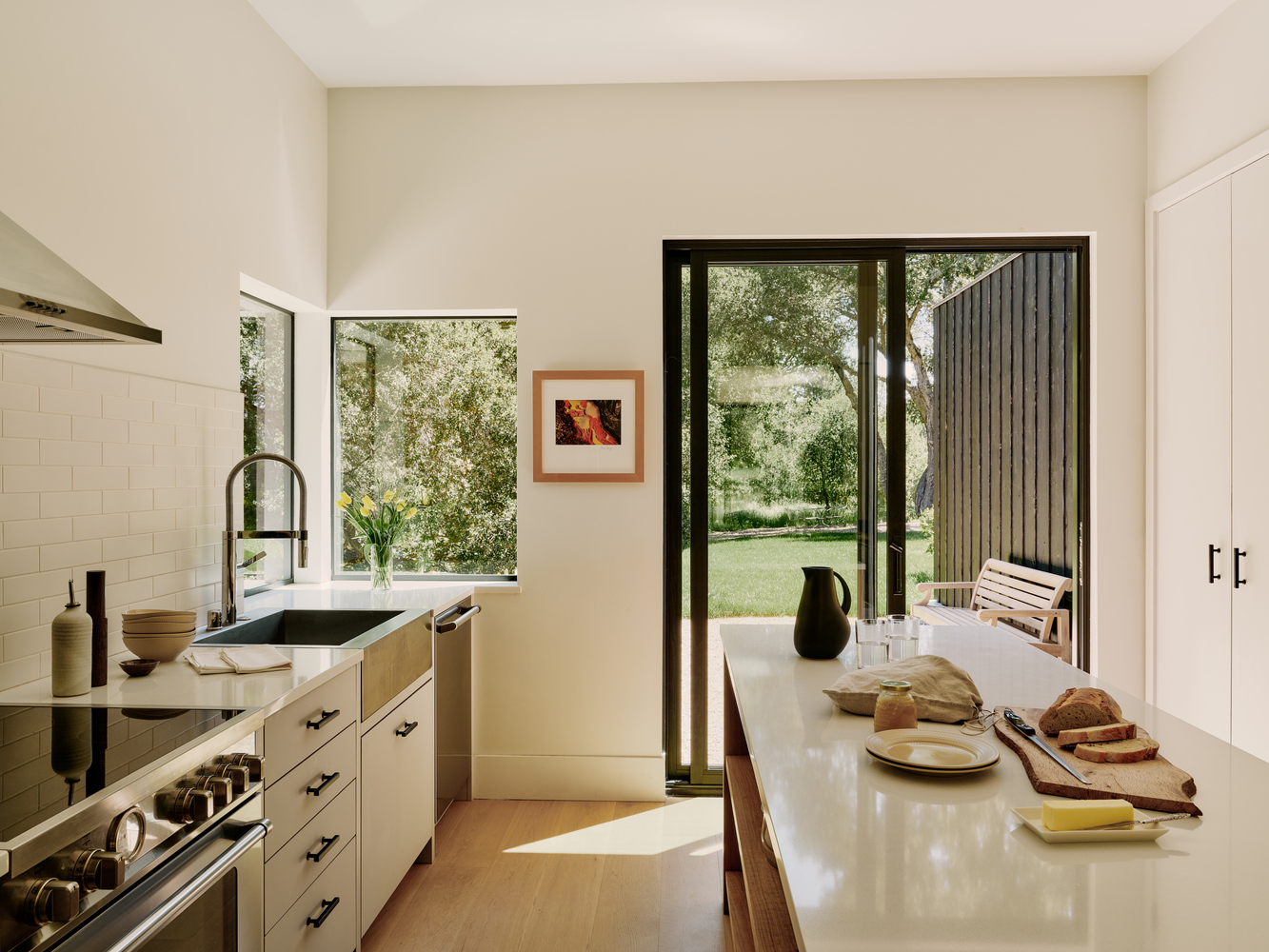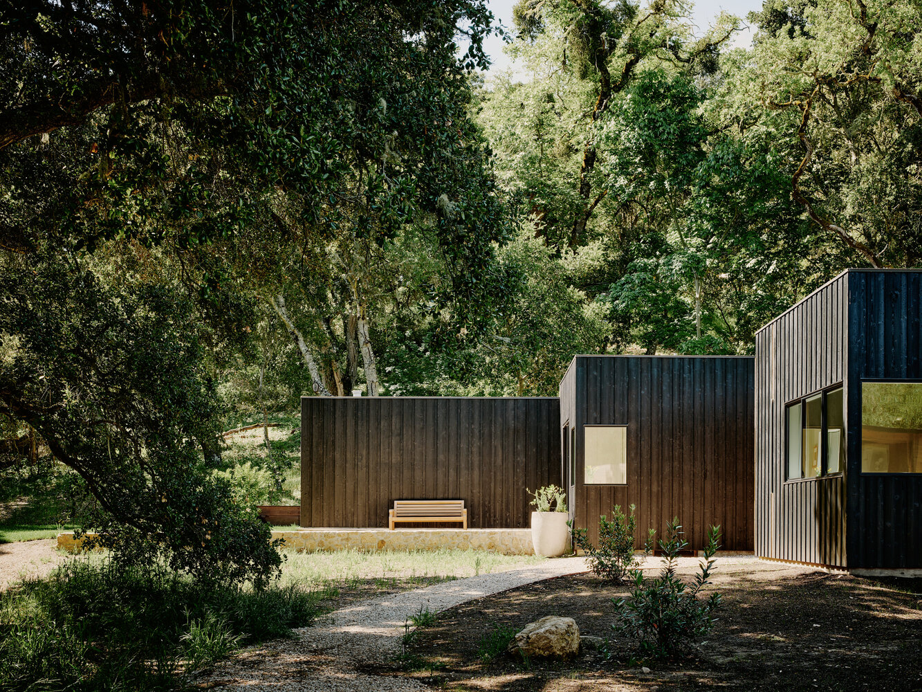 Encapsulating a small home for his family of four and an ADU for Mary Ann, the compound is located within a planned community adjacent to the Los Padres National Forest.