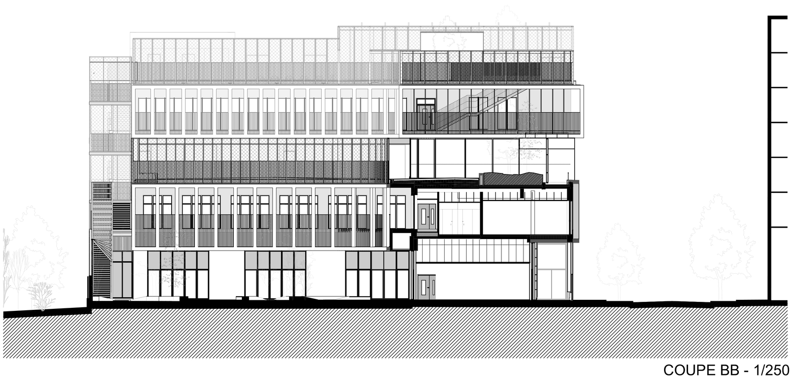 The project is also the result of a trusting partnership with Euroméditerranée and the City of Marseille, who supported the integration of new requests, such as the rooftop sports facility, and encouraged the agency's experimentation with innovative construction methods.